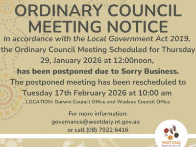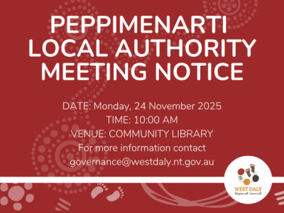 The West Daly Regional Council was formed following a meeting of clan groups in the Wadeye, Peppimenarti and Palumpa region, who made it clear to the Chief Minister, the Deputy Chief Minister and the Member for Daly, in person, that they wanted a stronger voice and greater control over the delivery of services in the Wadeye, Peppimenarti and Palumpa region.